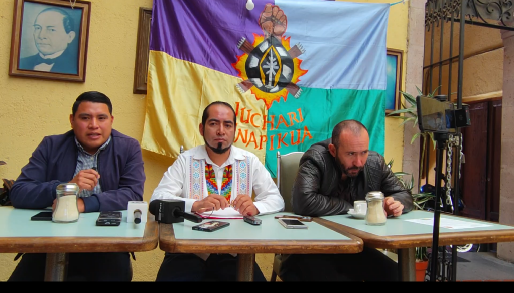 En rueda de prensa, el vocero del Consejo Supremo Indígena, Pavel Ulianov, vocero de #CSI, acompañado por los jefes de tenencia y encargados del orden de Opopeo y de las comunidades de San Gregorio, El Tzintzun, La Estacada, La Puerta, El Tzitzipucho, Turiran y Casas Blancas, dio lectura a un pronunciamiento en el que exigieron al Ayuntamiento de Salvador Escalante cumplir con las resoluciones judiciales que reconocen la autonomía de estas comunidades.